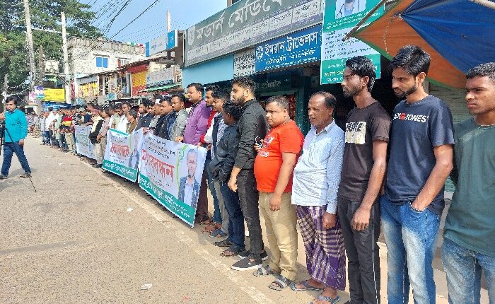 জুড়ীতে সাংবাদিক সিরাজুল ইসলামের উপর হামলার প্রতিবাদে মানববন্ধন