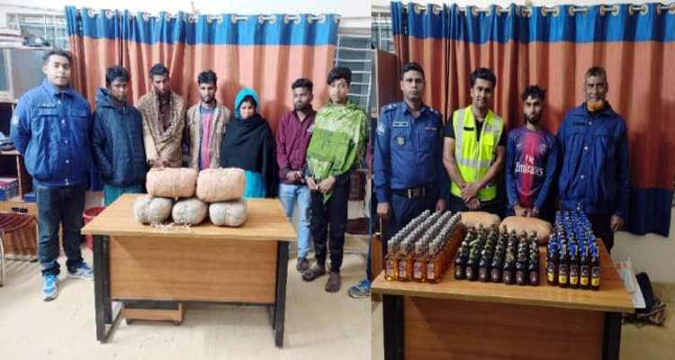 মাধবপুরে গাঁজা ও মদসহ ৭ পাচারকারী গ্রেফতার