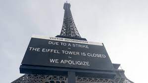 টাওয়ারের অপারেটর এসইটিই তাদের ওয়েবসাইটে বলেছে, ধর্মঘটের কারণে আইফেল টাওয়ার বন্ধ। আমরা দুঃখ প্রকাশ করছি।