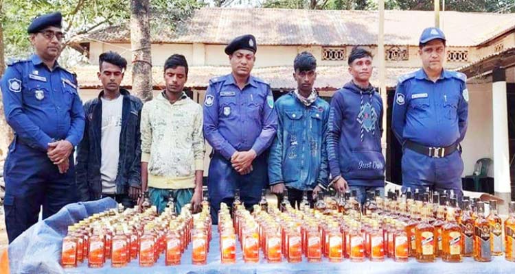 সুনামগঞ্জের তাহিরপুরে বিপুল পরিমাণ ভারতীয় বিভিন্ন ধরনের মদ সহ ৪ মাদক কারবারিকে গ্রেফতার করেছে থানা পুলিশ।