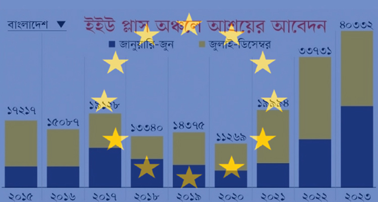 ‘ইইউ প্লাসে’ আশ্রয়প্রার্থী বাংলাদেশির রেকর্ডপ্রতিবেদনের তথ্য মতে, গত বছর ওই অঞ্চলে আশ্রয়প্রার্থী বাংলাদেশির সংখ্যা ছিল ৪০ হাজার ৩৩২। এর মধ্যে জানুয়ারি থেকে জুনের মধ্যে আবেদন করেছেন ২০ হাজার ৯২৬ বাংলাদেশি।