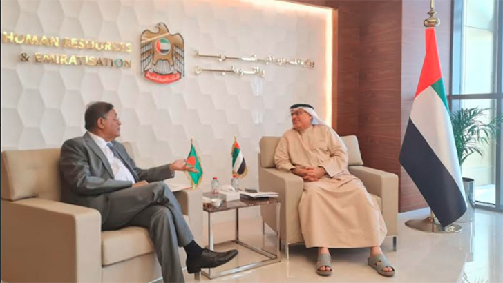 শুক্রবার সকালে দুবাইয়ে মন্ত্রী আব্দুল রহমান আল আওয়ারের কার্যালয়ে এই বৈঠকে পারস্পরিক স্বার্থসংশ্লিষ্ট দ্বিপাক্ষিক বিষয়াদির মধ্যে আমিরাতে বাংলাদেশি স্নাতক নার্স, কেয়ারগিভার, স্বাস্থ্যসেবা টেকনিশিয়ান, কৃষিবিদ ও কৃষক এবং বিভিন্ন পেশাজীবীসহ সব কর্ম অঙ্গনে আরও বাংলাদেশি নাগরিকদের নিয়োগের বিষয় নিয়ে আলোচনা করেন দুই মন্ত্রী।