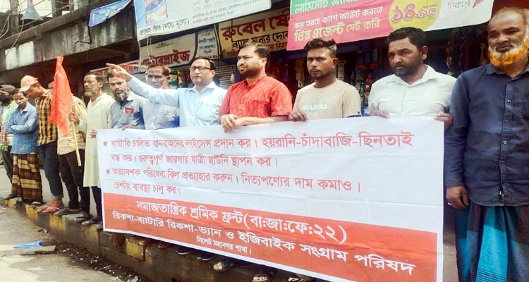 বক্তারা বলেন, দ্রব্য মূল্যের কারণে কর্মহীন মানুষ যখন অসহায় তখন নিজের উদ্যোগে শ্রমিকরা ব্যাটারিচালিত রিকশা চালিয়ে জীবিকা নির্বাহ করে। কিন্তু পুলিশ প্রশাসন এই রমজান মাসেও আটক রিকশা ছেড়ে না দেওয়া অমানবিক।
