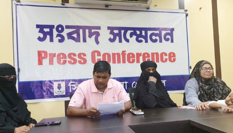 সিলেটের গোলাপগঞ্জে ছাত্র-জনতার আন্দোলনের ঘটনাগুলোতে জড়িত নয় এমন একজনকে আসামি করে হয়রানি করা হচ্ছে বলে অভিযোগ উঠেছে। রবিবার (৮ সেপ্টেম্বর) বেলা আড়াইটায় সিলেট জেলা প্রেসক্লাবে সংবাদ সম্মেলন করে এ অভিযোগ তুলে ধরে ভুক্তিভোগীর মা আমেনা বেগম। তাঁর পক্ষে লিখিত বক্তব্য পাঠ করেন আমেনার ভাই রাশিদ মিয়া।