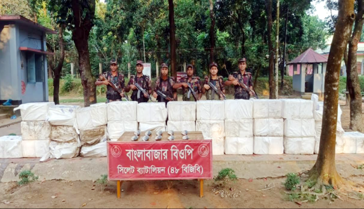সুনামগঞ্জের দোয়ারাবাজার সীমান্তে বর্ডার গার্ড বাংলাদেশ (বিজিবি) সিলেট ব্যাটালিয়নের (৪৮ বিজিবি) অভিযানে ভারতে পাচারের সময় ৮৮৫ কেজি বাংলাদেশি ইলিশ মাছ জব্দ করা হয়েছে।