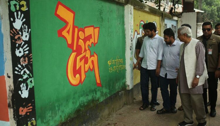 ঢাবি ক্যাম্পাসে হেঁটে হেঁটে গ্রাফিতি দেখলেন ড. ইউনূস