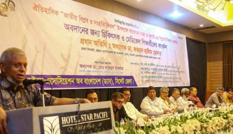 গত বুধবার সন্ধ্যায় সিলেট নগরীর দরগা গেট এলাকার একটি রেস্তোরাঁর হল রুমে ডক্টরস অ্যাসোসিয়েশন অব বাংলাদেশ (ড্যাব), সিলেট জেলা আয়োজিত আলোচনা সভা ও জুলাই-২৪ বিপ্লবে চিকিৎসাসেবায় অবদানের জন্য চিকিৎসক ও মেডিকেল শিক্ষার্থীদের সংবর্ধনা অনুষ্ঠানে তিনি তার বক্তব্যে ক্ষোভ প্রকাশ করেন।