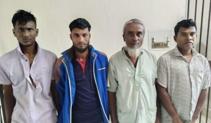 গ্রেফতারকৃতরা হলেন- সিলেট মহানগরীর ছড়ারপাড় এলাকার মারফত আলীর কলোনীর মো. শাহীন মিয়ার ছেলে মো. সানী মিয়া (২৫), সুনামগঞ্জের দিরাই উপজেলার দল কুতুব গ্রামের আব্দুল হাসিমের ছেলে নূর আহমদে (৩০), সুনামগঞ্জের জামালগঞ্জ উপজেলার লক্ষীপুর গ্রামের মৃত তাজির মুল্লুকের ছেলে ফরহাদ হোসেন (৪০) ও সিলেট মহানগরীর চালিবন্দর এলাকার আব্দুর রউফের ছেলে মো. আশরাফ উদ্দিন (৫৫)।