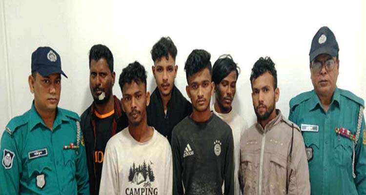 গ্রেপ্তাররা হলেন, মো. হাছান (২৫), মো. শোয়াইব প্রকাস সৌরভ (১৬), মেহেদী হাসান শুভ প্রকাশ বাবু (১৯), মোহাম্মদ জনি (৩৫), হানিফুর রহমান ইরফান (১৯) এবং ইফতেখার আলী ওয়াবিদ (২১)।