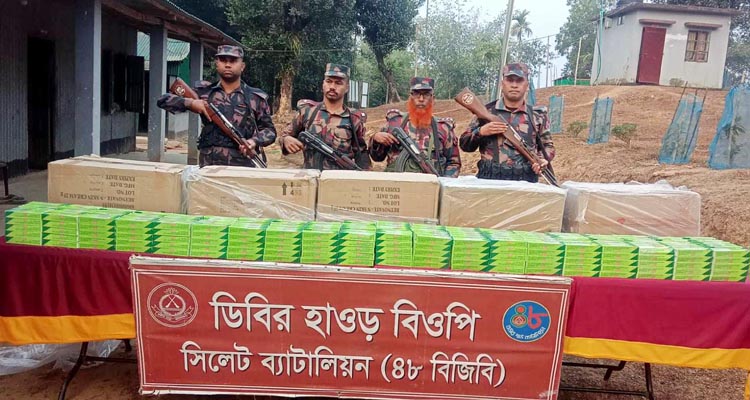 বিজিবি জানায়, গোপন সংবাদের ভিত্তিতে ৪৮ বিজিবির দায়িত্বাধীন সিলেট এবং সুনামগঞ্জ জেলার সীমান্তবর্তী এলাকায় বাংলাবাজার, পান্থুমাই, প্রতাপপুর, সোনারহাট, কালাসাদেক, লবিয়া, ডিবিরহাওর, মিনাটিলা, বিছনাকান্দি, সংগ্রাম, উৎমা, বিওপি অভিযান চালিয়ে বিপুল পরিমান ভারতীয় শাড়ী, চিনি, বেটনোভেট ক্রিম, হোয়াইট টোন ক্রিম, বডি স্প্রে, ওয়াইল্ড স্টোন পারফিউম, কমলা, সুপারি, ফুচকা, মহিব, বিড়ি, মদ, বাংলাদেশ থেকে পাচারকালে শিং মাছ, রসুন এবং চোরাচালানী মালামাল পরিবহনে ব্যবহৃত মোটরসাইকেল আটক করে।