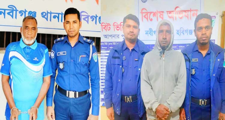 হবিগঞ্জের নবীগঞ্জ উপজেলায় অপারেশন ‘ডেভিল হান্ট’ এর অংশ হিসেবে পুলিশের বিশেষ অভিযানে দিলবাহার আহমেদ দিলকাছ (৬০) ওইকবাল হোসেন (৪৫) নামে দুই ইউপি সদস্যকে গ্রেফতার করা হয়েছে।
