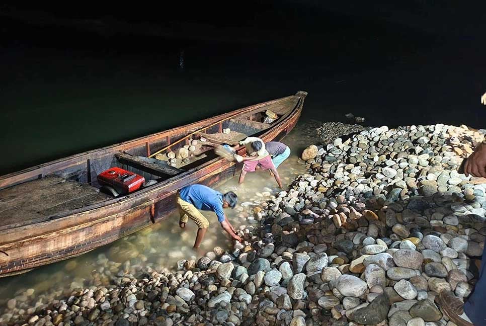 সাদাপাথরে বিছিয়ে দেওয়া হলো জব্দকৃত ১২ হাজার ঘনফুট পাথর