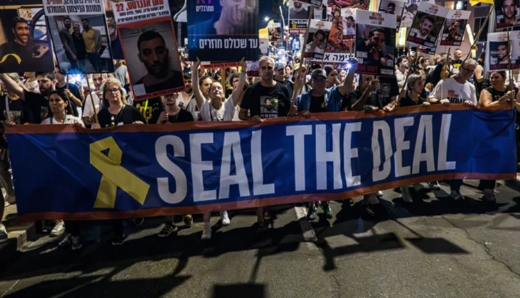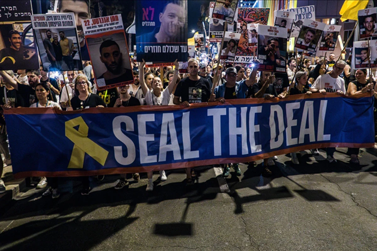 ইসরায়েলজুড়ে বিক্ষোভ করেছেন হাজার হাজার মানুষ। শনিবার দেশটির বিভিন্ন শহরে তারা রাস্তায় নেমে বিক্ষোভ করেন। এ সময় তারা গাজায় আটক ইসরায়েলি বন্দিদের মুক্তির জন্য চুক্তি এবং চলমান যুদ্ধের অবসান দাবি করেন।