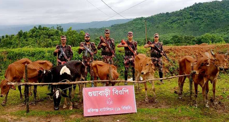বিজিবি জানায়, শুক্রবার গুয়াবাড়ি সীমান্ত এলাকা থেকে ভারতীয় ৩টি গরু ও ১টি মহিষ আটক করা হয়। আটক গরু ও মহিষের মূল্য প্রায় ৩ লাখ ৯০ হাজার টাকা। এদিকে, লালাখাল ও জৈন্তাপুর সীমান্ত ফাঁড়ির বিজিবি সদস্যরা অভিযান চালিয়ে ৩টি গরু ও ১টি মহিষ আটক করে। আটক ৪টি পশুর বাজার মূল্য প্রায় ৩ লাখ ৯০ হাজার টাকা বলে জানিয়েছে বিজিবি। আটককৃত পশুর মোট বাজার মূল্য প্রায় ১০ লাখ ৩০ হাজার টাকা।