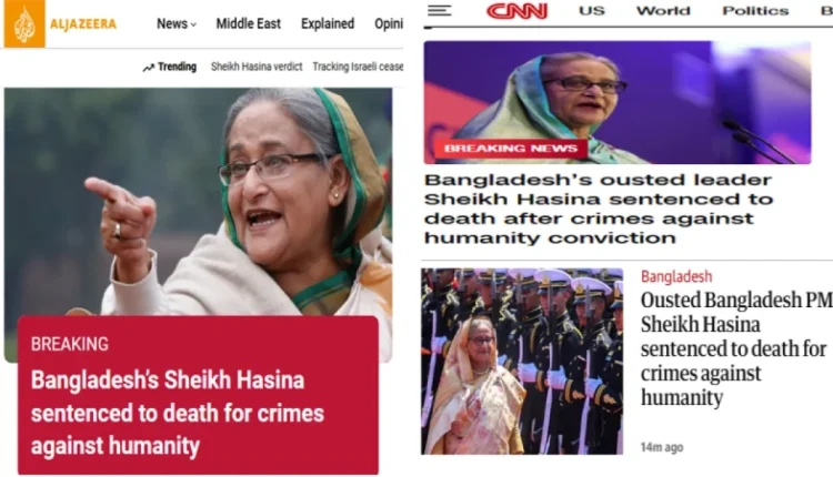 আন্তর্জাতিক সংবাদমাধ্যমে শেখ হাসিনার মৃত্যুদণ্ডের খবর