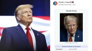 নিজেকে ভেনেজুয়েলার ভারপ্রাপ্ত প্রেসিডেন্ট ঘোষণা করেছেন মার্কিন প্রেসিডেন্ট ডোনাল্ড ট্রাম্প। নিজের সামাজিক যোগাযোগমাধ্যম ট্রুথ সোশ্যালে এই ঘোষণা দিয়েছেন তিনি।