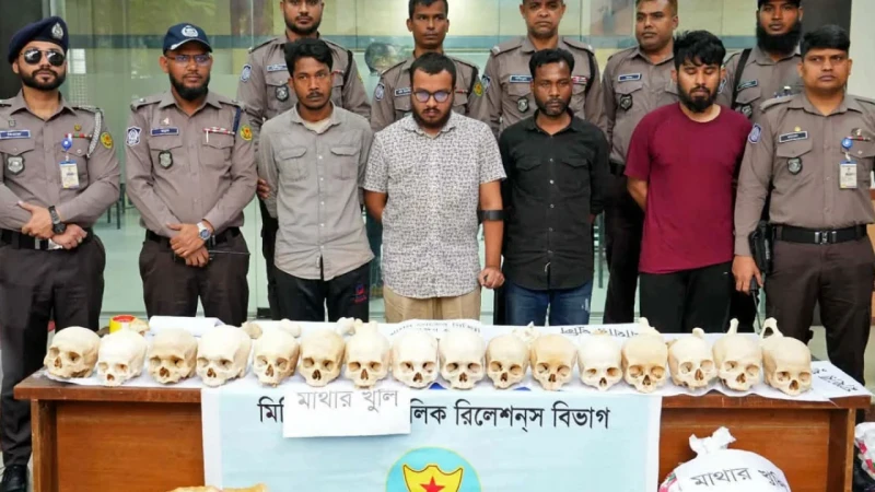 ঢাকার তেজগাঁও থানা এলাকা থেকে ৪৭ টি মাথার খুলি ও মানবদেহের বিপুল পরিমাণ হাড়সহ গ্রেপ্তার সংঘবদ্ধ মানব কঙ্কাল পাচারচক্রের চার সদস্যকে কারাগারে পাঠানোর আদেশ দিয়েছেন আদালত।আজ মঙ্গলবার ঢাকার মেট্রোপলিটন ম্যাজিস্ট্রেট মোহাম্মদ এহসানুল ইসলাম এ আদেশ দিয়েছেন।